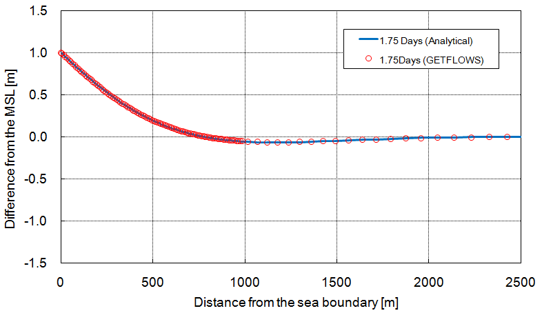 The root mean square error (RMSE) was used to compare the analytical results and the results of GETFLOWS simulation. The RMSE is computed with: