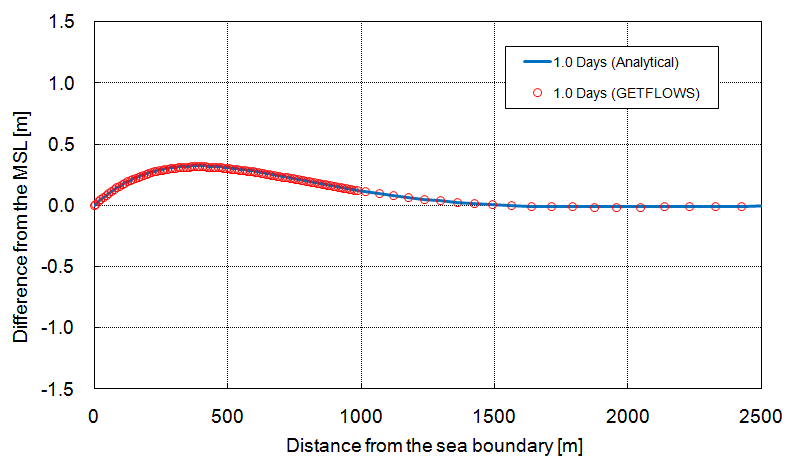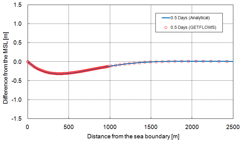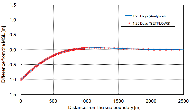 The root mean square error (RMSE) was used to compare the analytical results and the results of GETFLOWS simulation. The RMSE is computed with: